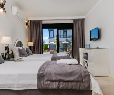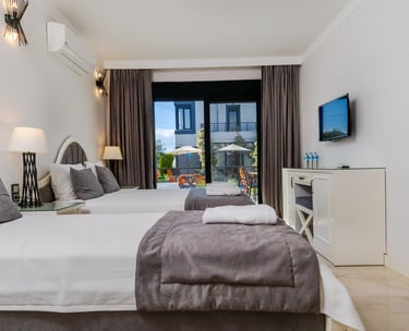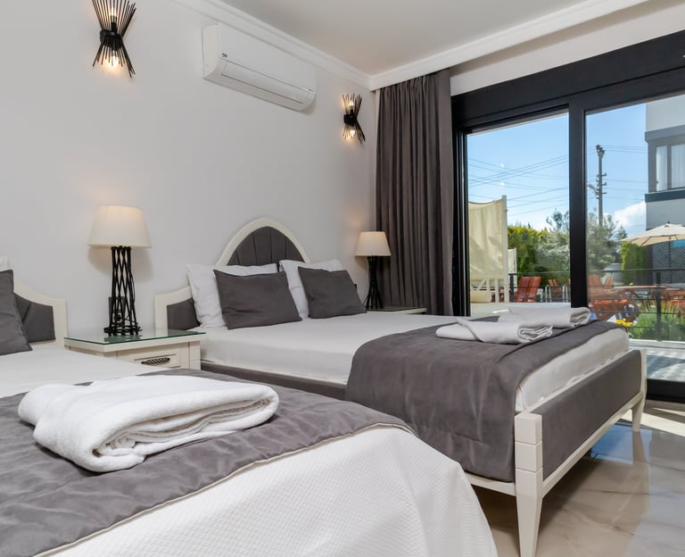 Aileler veya arkadaş grupları için ideal olan bu oda tipimiz, üç kişilik konaklamalar için tasarlanmıştır. Geniş balkonuyla Cunda'nın doğal güzelliklerini izleyebilir, konforlu yataklarıyla rahat bir uyku deneyimi yaşayabilirsiniz.