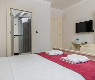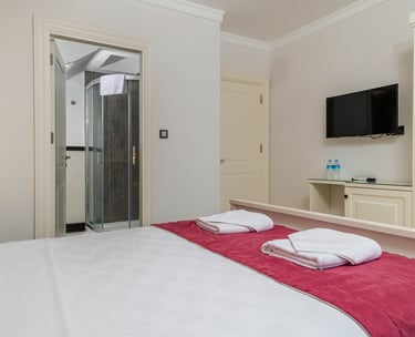Bu oda tipimiz, romantik bir atmosfer arayan çiftler için mükemmeldir. Fransız balkonuyla odanıza doğal ışık ve ferahlık katar. Modern tasarımı ve konforlu olanaklarıyla unutulmaz bir konaklama sunar.