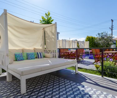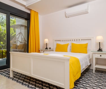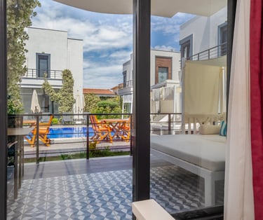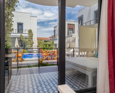 Bu oda tipimiz, çift kişilik konaklamalar için idealdir. Geniş ve ferah bir alana sahip olan odalarımızda, özel balkonunuzda Cunda'nın eşsiz manzarasının keyfini çıkarabilirsiniz. Modern dekorasyonu ve konforlu mobilyalarıyla huzurlu bir konaklama deneyimi sunar.
